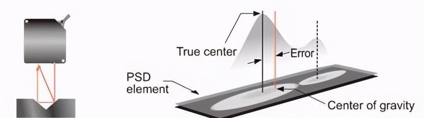 PSD方法:當傳感器為整個光束點的光量分布測量重心作為位置信息時,由于二次反射光的存在而發生誤差。