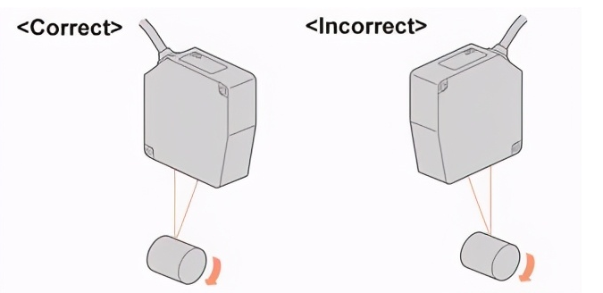 當對材質和顏色明顯不同的移動物體進行位移測量時,可以通過如下所示安裝傳感器將誤差降至最di。