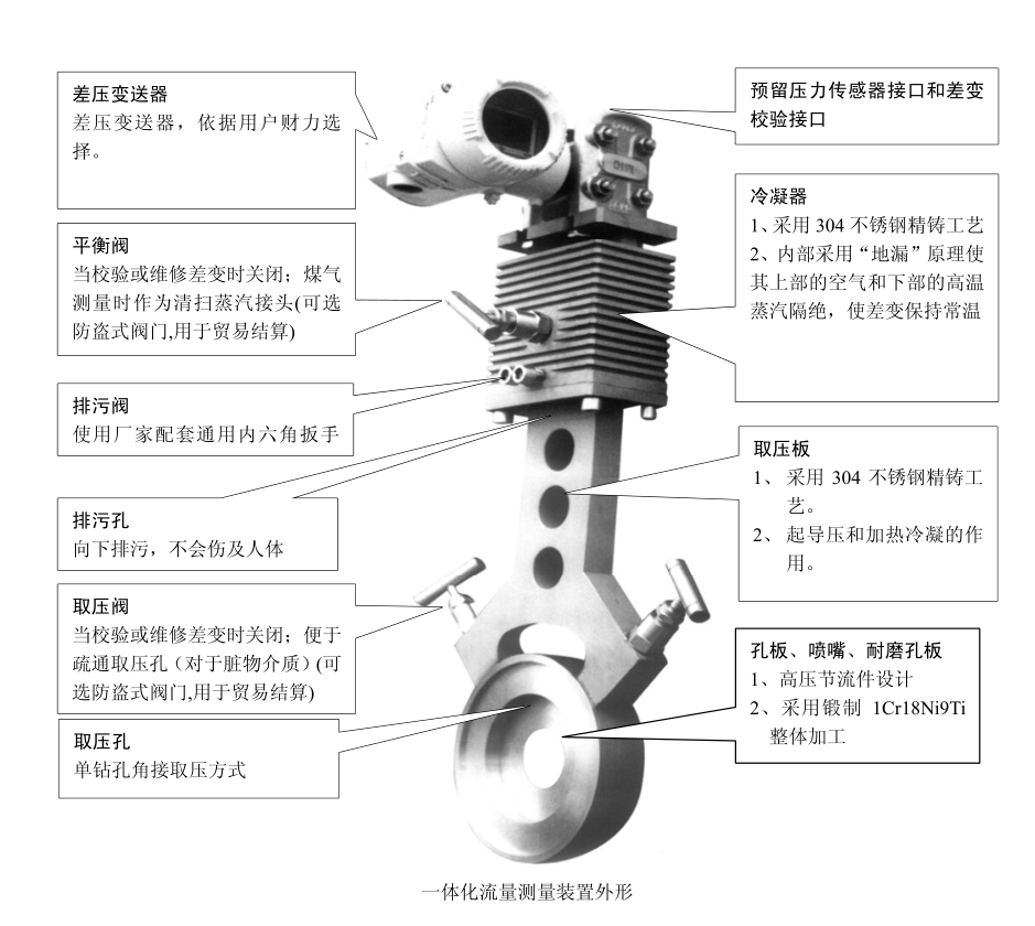 3.1 節流裝置和差壓變送器甚至壓力、 溫度變送器做成一體, 節約安裝、 維護工作量及費用。