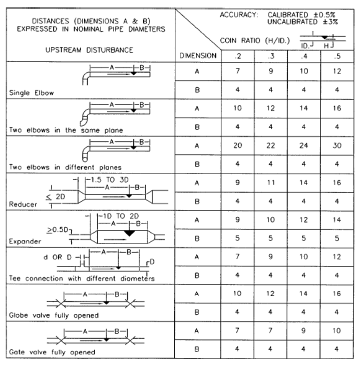 1.如果上、下游直管段只能滿足上表中所示的一半,測量精度值也相應的應該加1個百分點。