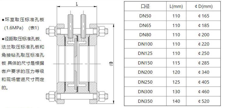 ③適用直徑比為0.22~0.75,雷諾數ReD道直徑DN50~1000mm,允許外推到5000mm。=d/D,d孔板開孔直徑;D&md實際內徑