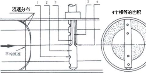 一般管道中的流速分布是不均勻的。如果是充分發展的流體,其速度分布為指數規律。為了準確計量,將整個圓截面分面多個單元面積相等的多個半圓及多個半環。傳感器的檢測桿是由一根中空的金屬管組成,迎流面鉆多對總壓孔,它們分別處于各單元面積的中央,分別反應了各單元面積內的流速大小。由于各總壓孔是相通的,傳至檢測桿中的各點總壓值平均后,由總壓引出管引至高壓接頭,送到傳感器的正壓室。當傳感器正確安裝在有足夠長的直管段的工藝管道上時,流量截面上應沒有旋渦,整個截面的靜壓可認為是常數,在傳感器的背面或側面設有檢測孔,代表了整個截面的靜壓。經靜壓引出管由低壓接頭引至傳感器的負壓室。正、負壓室壓差的平方與流量截面的平均流速成正比,叢而獲得差壓與流量成正比的關系。在此關系的基處上,可由伯努利方程和連續性方程推導得到均速管流量計的流量計算公式